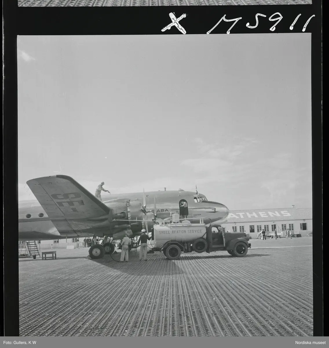 1717/H Aten. Ett flygplan tankas på Athens flygplats.