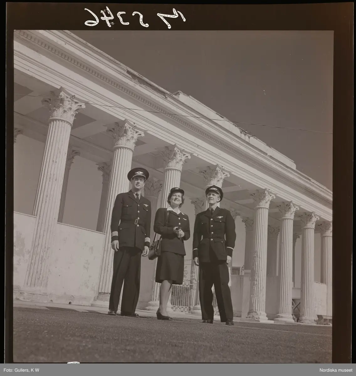 Titel: 1717/H Aten. En kvinna och två män i uniform besöker Akropolis.