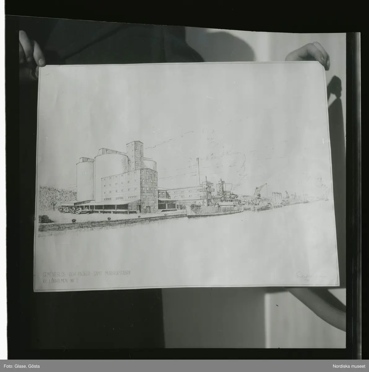 Cementas nya silos på Lövholmen, 1946.