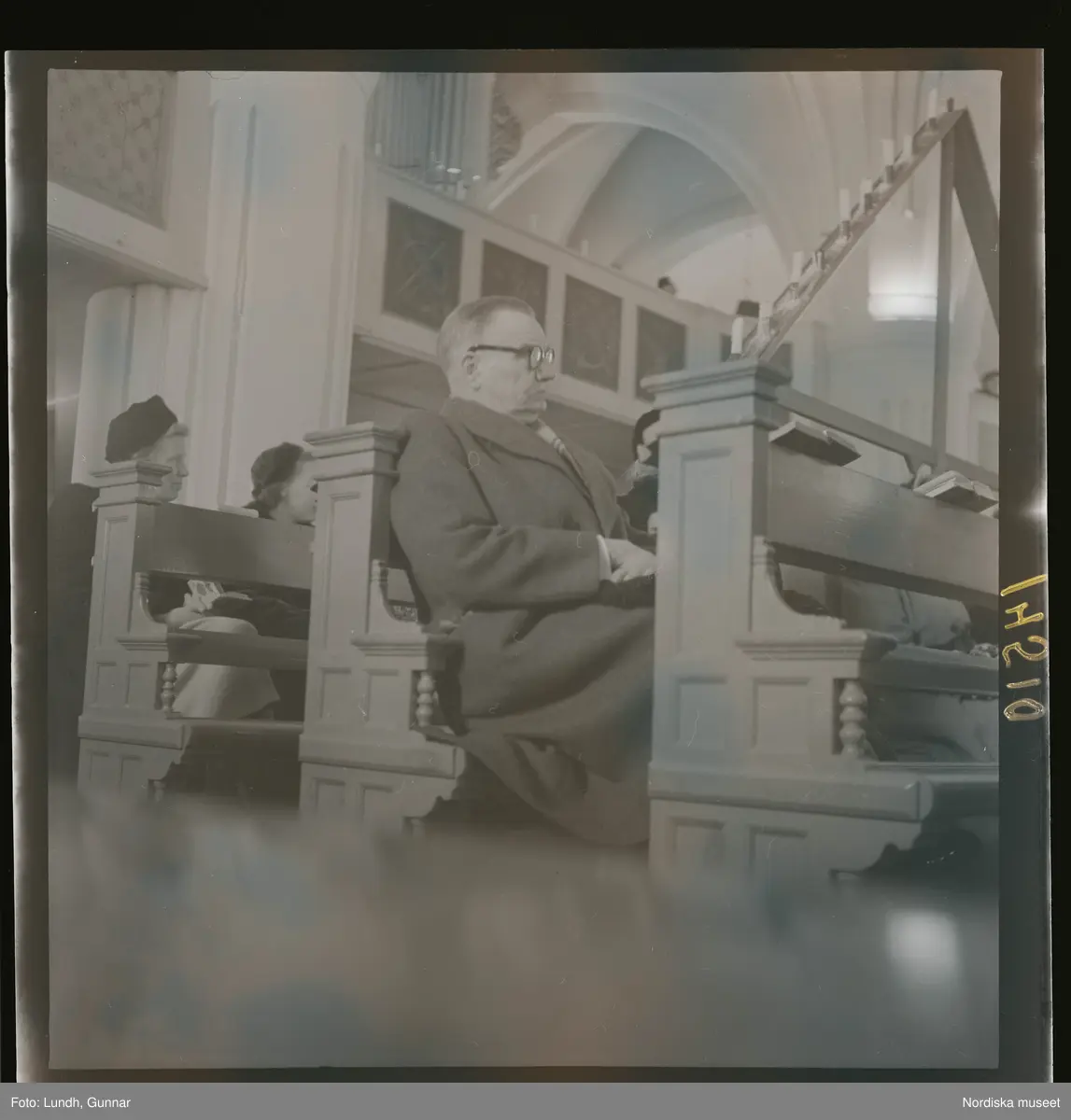 Titel: 1950. Leksands kyrka. Folk i kyrbänkar