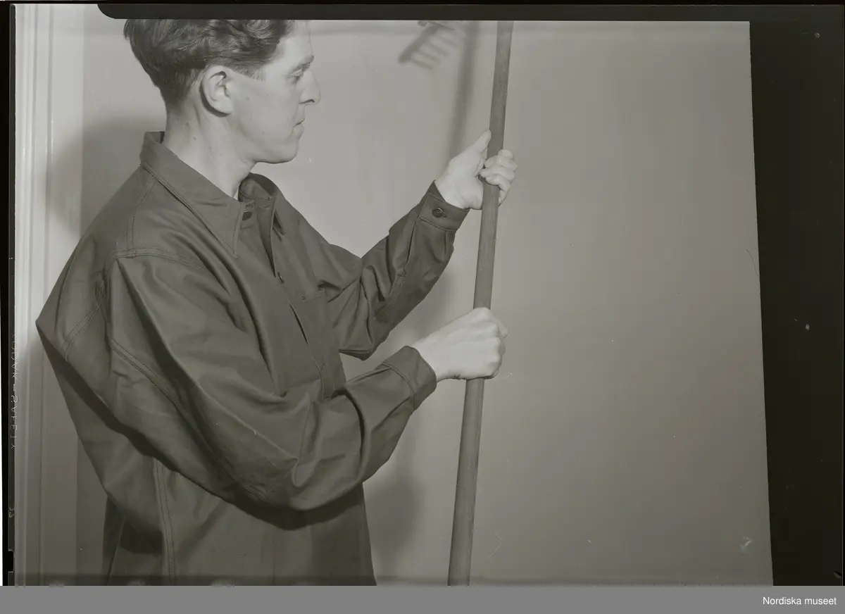 Man i arbetsskjorta. Dokumentation av Slitmanfabriken ABs verksamhet.