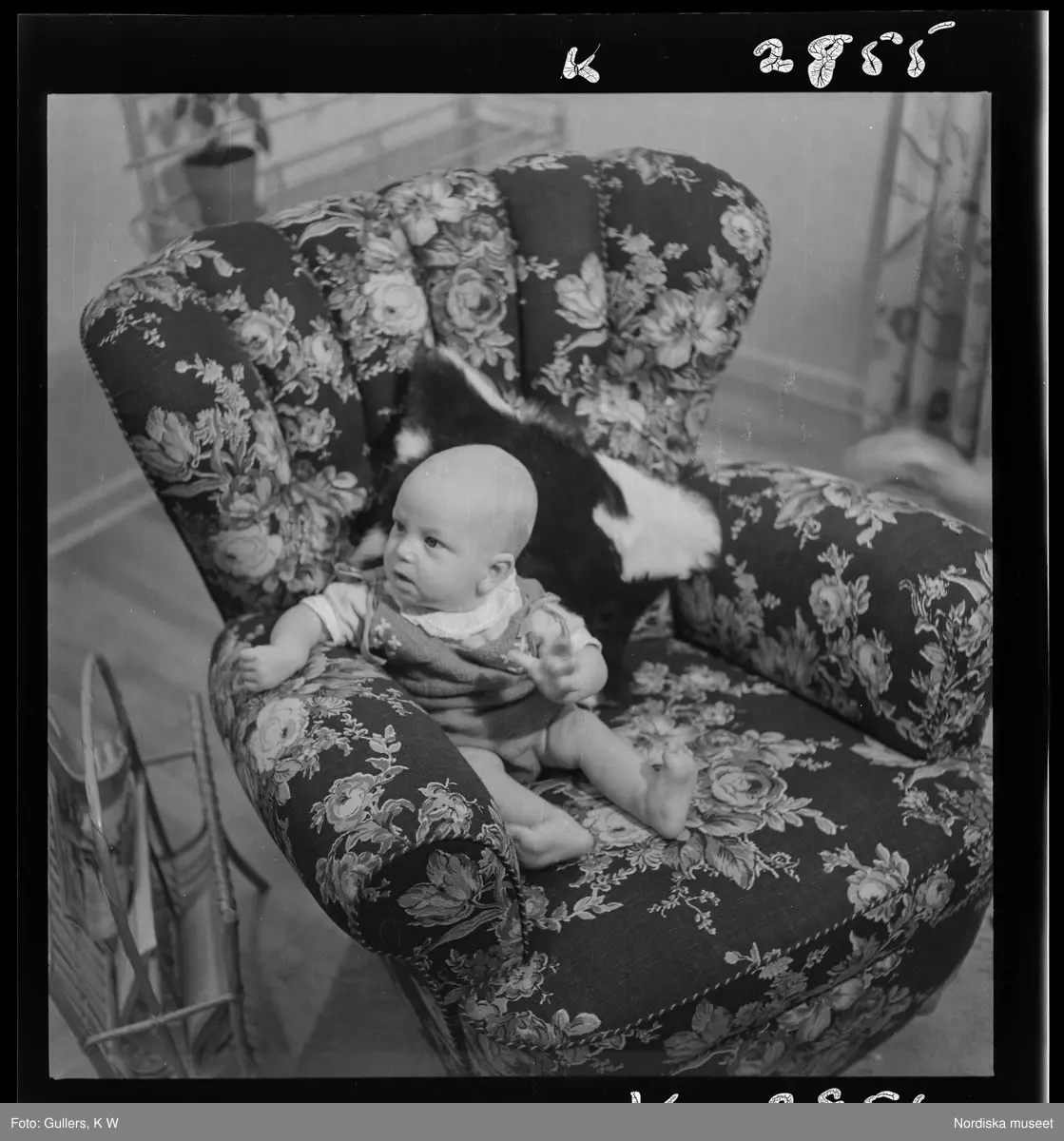 513 B Red. Karlströmer. En bebis i en blommig fåtölj.