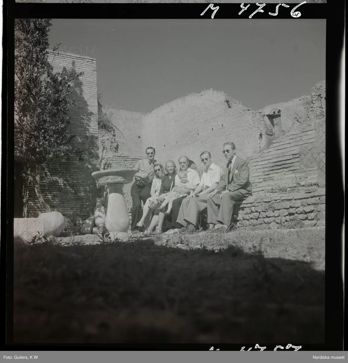 1717/A Rom. En grupp turister poserar sittandes på husruin.