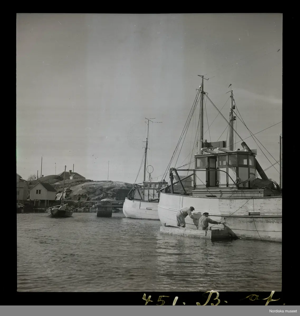 GG 628 Neptun under ommålning i Vrångö hamn. Vid målningsarbetet används flottar med låga relingar.