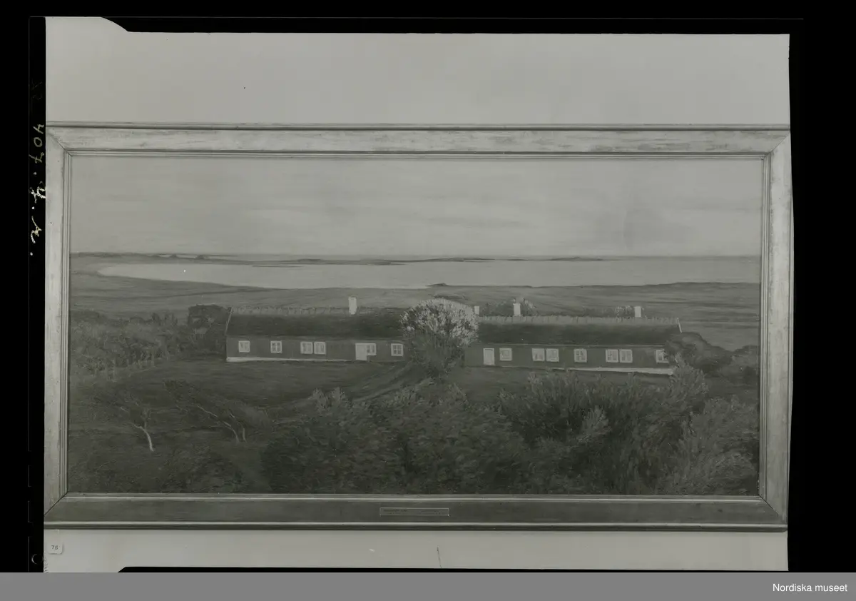 Ramad målning "Granngårdarna" av konstnär Karl Nordström.