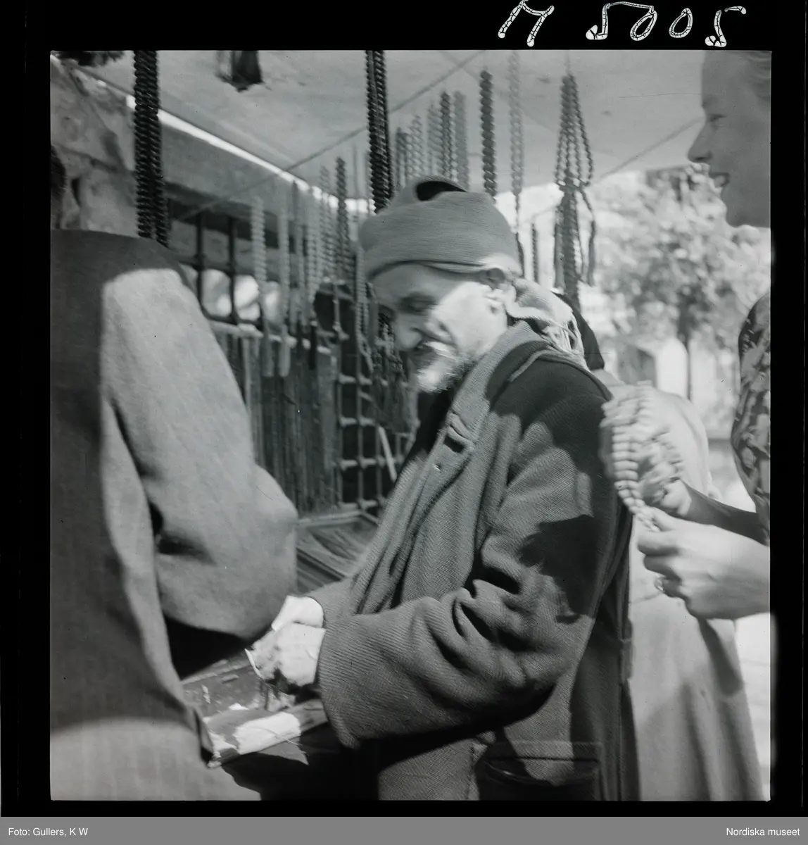 1717/K Istanbul allmänt. Gatuförsäljare. Vid ett stånd tittar turister på varor.