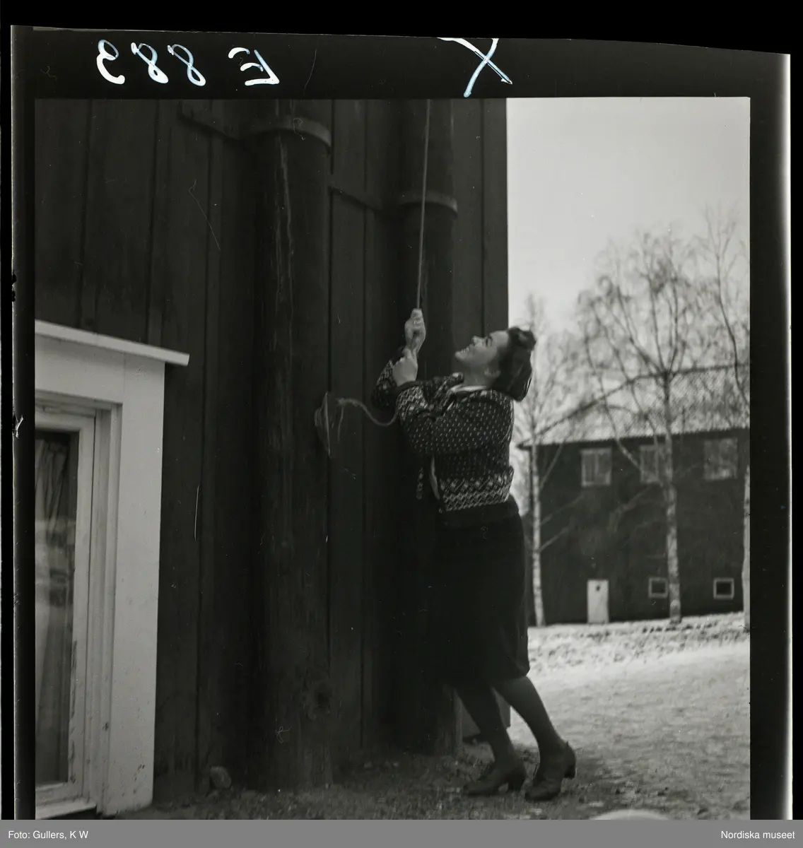 584 Brunsviks Folkhögskola. barbro Danielsson drar i snöret till klocka som ringer för matrast.