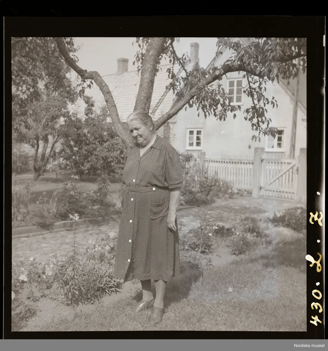 Text på montering i arkivet: Fröken Alfrida Hansson i sin trädgård.
