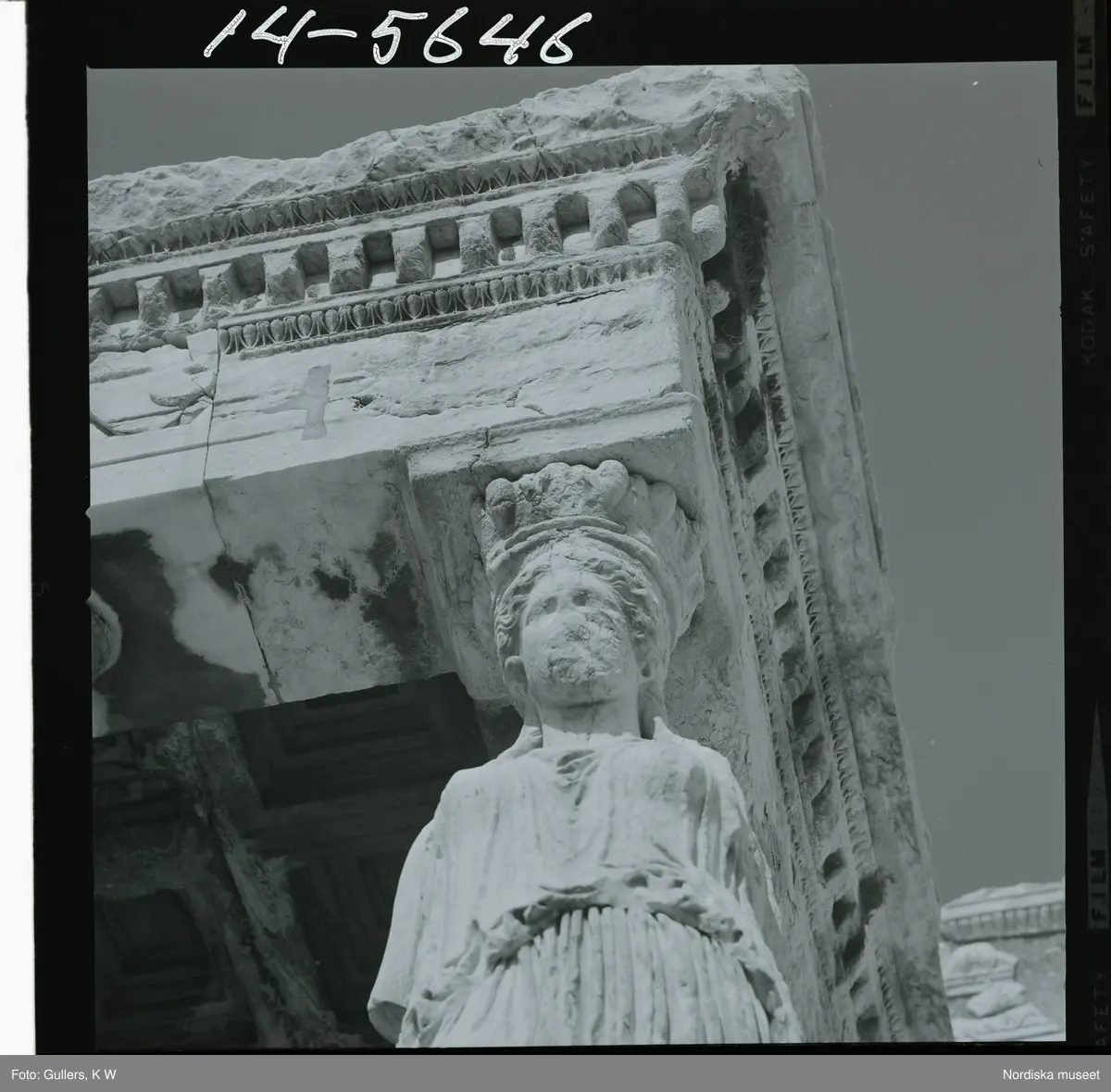 2795 Grekland Akropolis. Närbild av skulptur på templet Erechtheion.