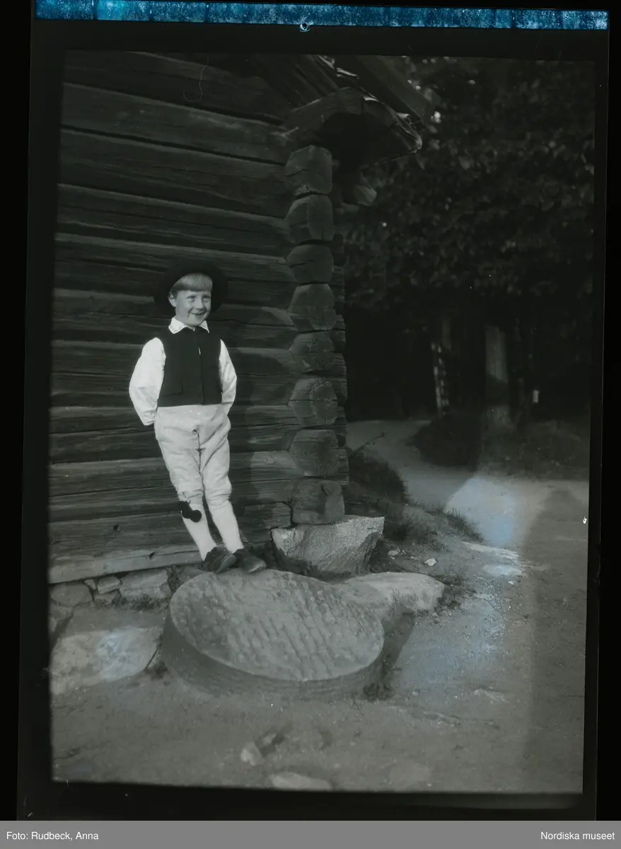 17 Skansen Ringleksbarn. En pojke i folkdräkt, utomhus på Skansen.