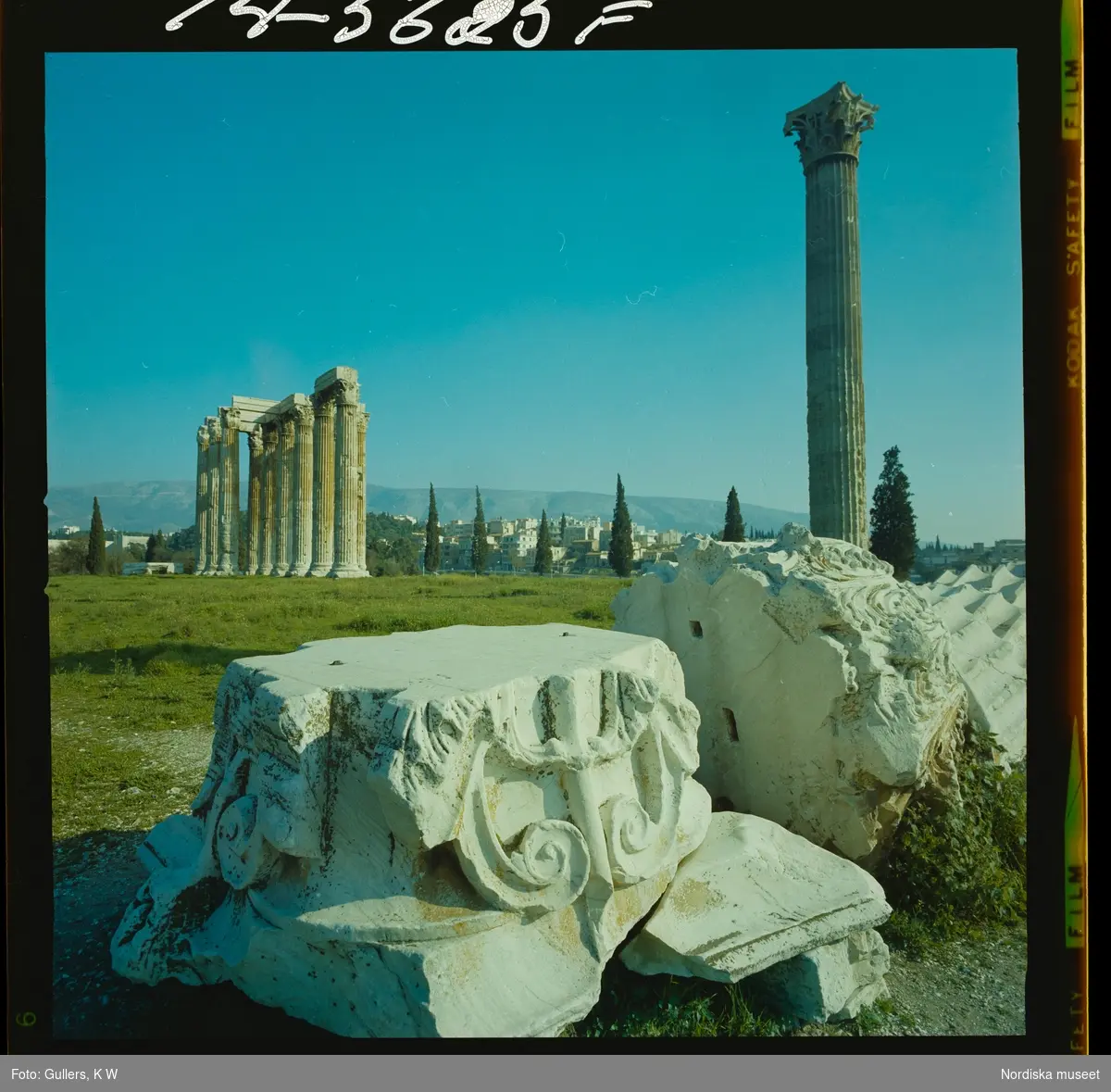 2795 Grekland Akropolis med runierna av bl.a. templen Parthenon och Erechtheion. Kolonn i delar på marken.