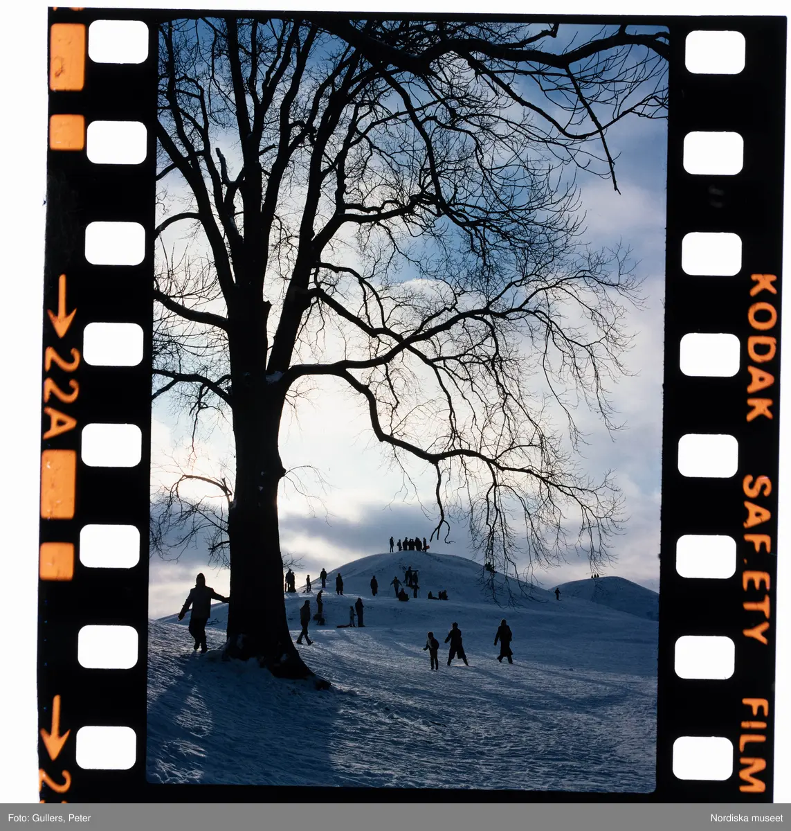 2771/46 Landskap-natur Vinterlekar på Uppsala högar för kalendermotiv.