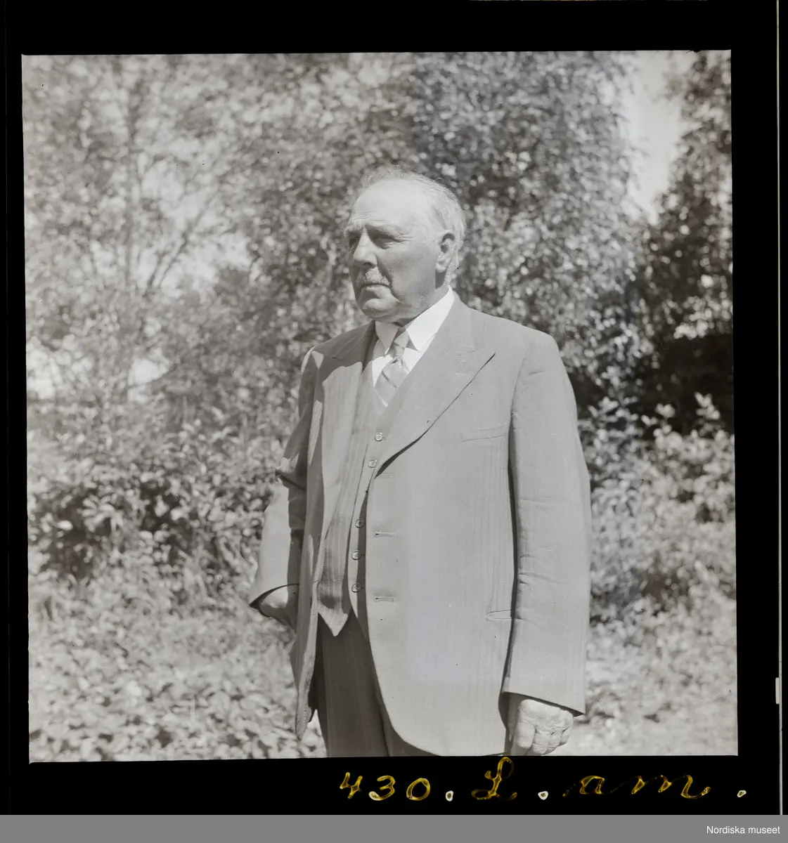 Titel: Text på montering i arkivet: Fiskaren Anders Petter Persson i trädgården.