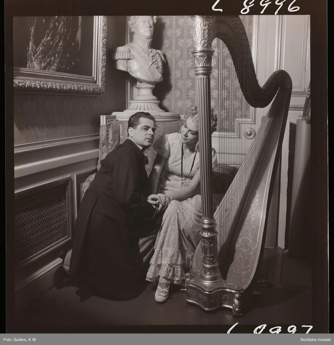561 A Operareportage för tidningen Vi. En man och en kvinna sitter intill en harpa.