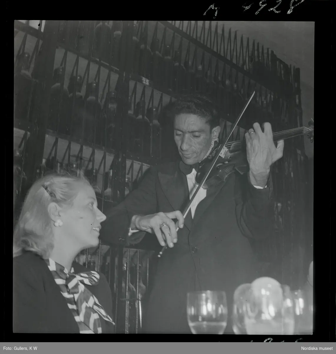 1717/A Rom. En man spelar fiol för en kvinna på en restaurang.