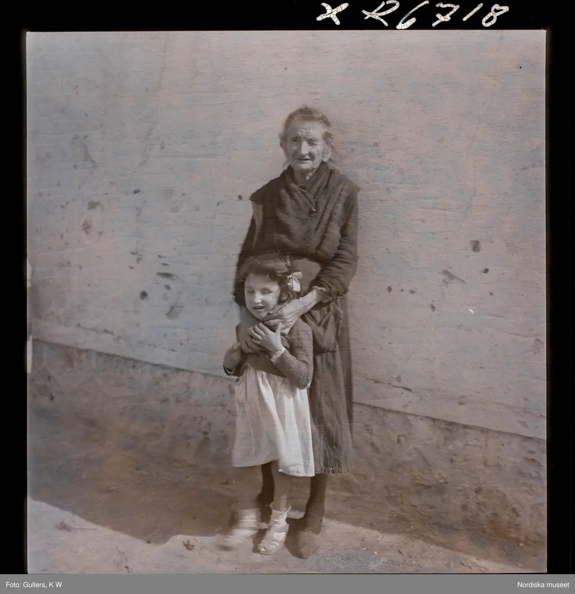 Titel: 568 F. Stieg Trenter, Torremolinos. En äldre kvinna och en flicka vid en husvägg.