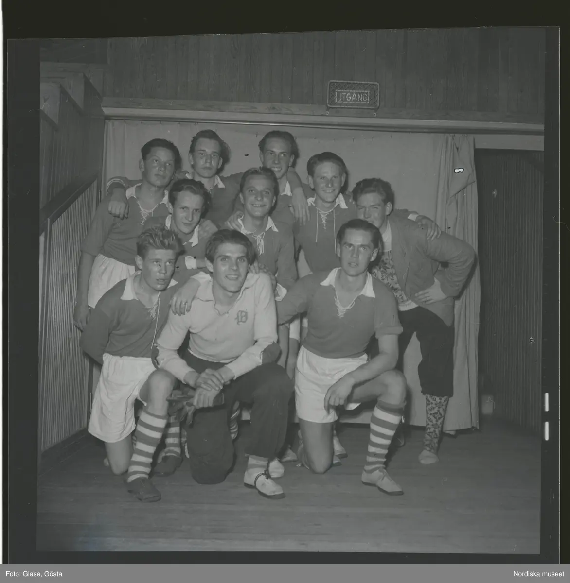 Östra Reals segrande handbollslag. Bakre raden från vänster: Lennart Palmgren, Arne Leijon, Jan Cederin, Sten Söderberg och lagledaren Lars Hoff. Mellanraden från vänster Folke Gustafsson och Lennart Paus, främre raden från vänster Lennart Alerius, Kurt Rydén och Arne Möller. 8-11-44