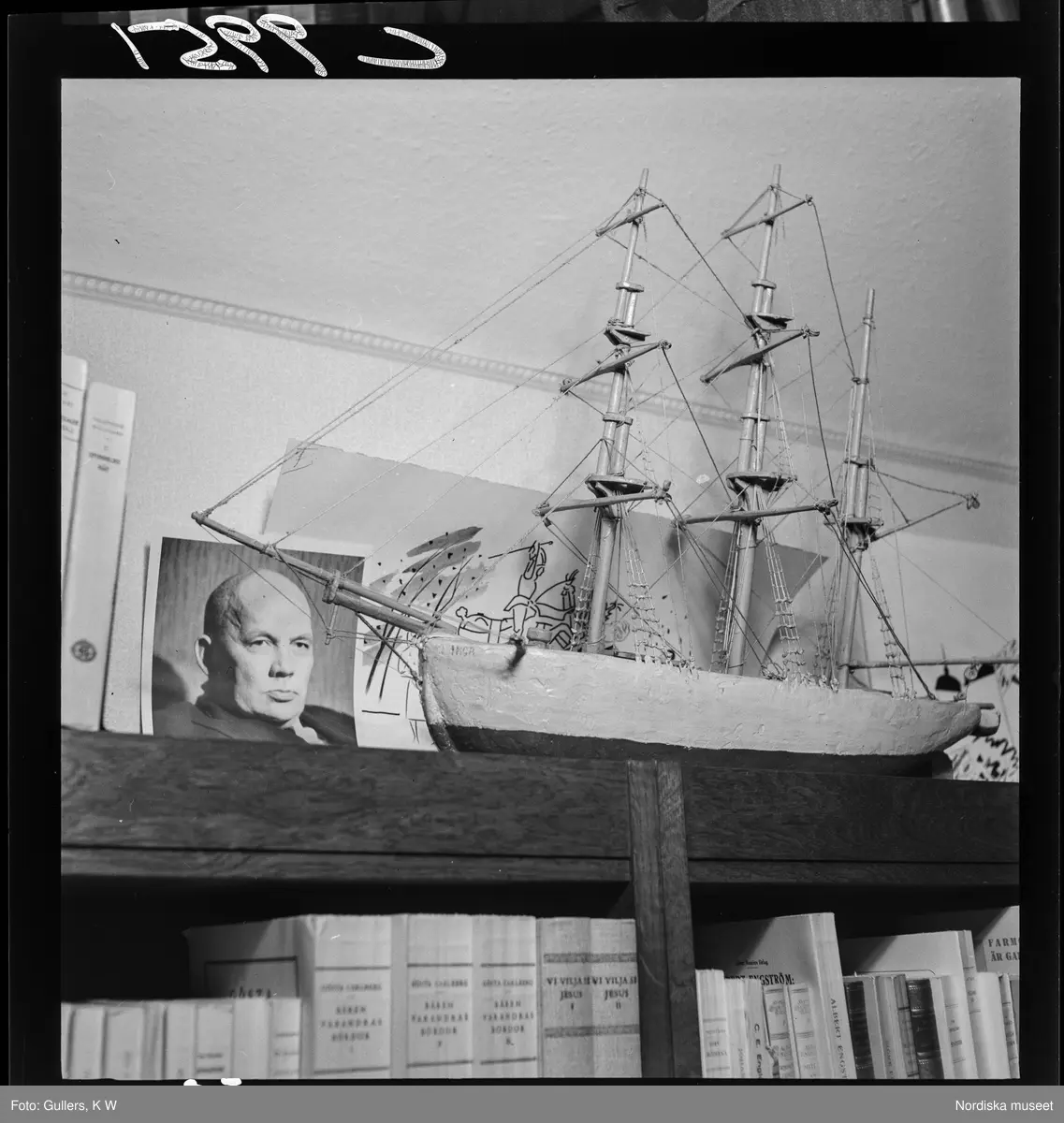 509 Hammenhög v för Allers. Modellfartyg i bokhylla.