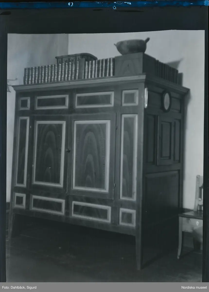 nr 234 sängskåp,buskmålat. Måln. årtal 1870. Jfr bild nr 13 och dess text. Nr 140 träskrin, buskmålat. Måln. årtal 1863. Står på lucksängens (j?)teshörna. Nr 533 matfat av vrid, handtäljt. Två grepar."