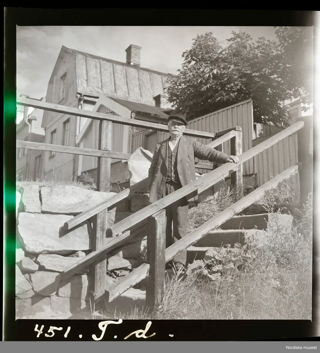 Porträtt av en man som står i en trappa, utomhus. Björkholmen, Karlskrona.