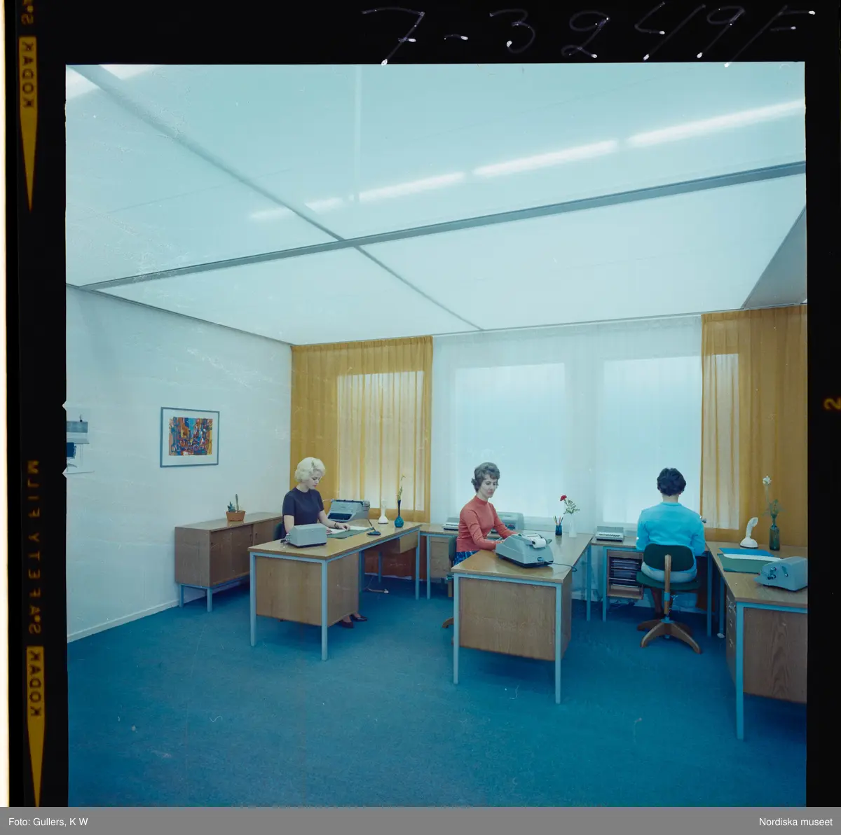 585/8 Facit Tokyo Daberg. Tre kvinnor arbetar vid skrivbord på ett kontor.