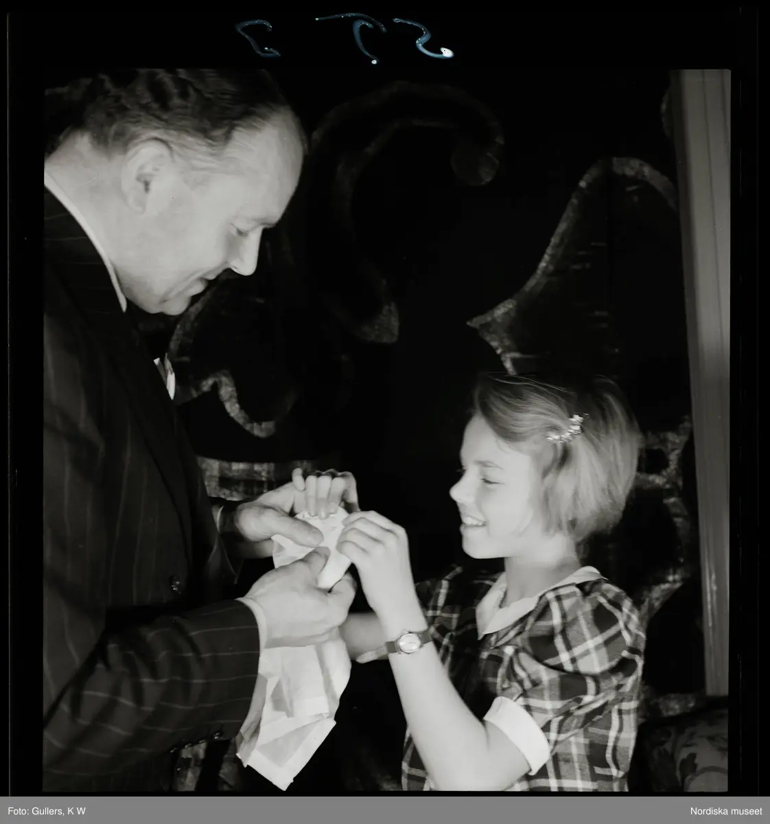 568 Trenters reportage. En man utför trolleri-trick tillsammans med ett barn.