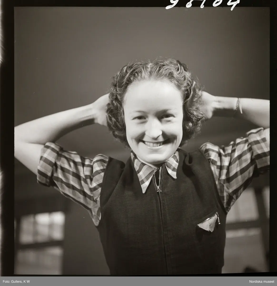 601 G, Åtvidabergs Industrier kontorsgymnastik. Kvinna gymnastiserar.