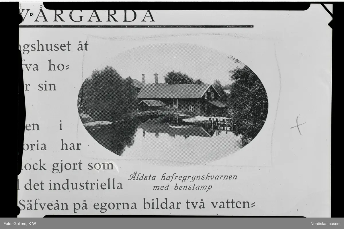 564 Vårgårda Havregryn. Avfotograferad tryckt bild av den "äldsta havregrynskvarnen med benstamp", Vårgårda.