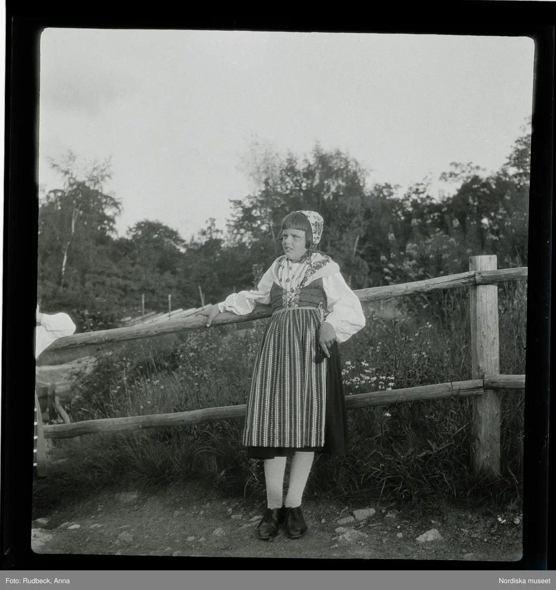 Skansen Ringleksbarn. En flicka i folkdräkt, utomhus på Skansen.