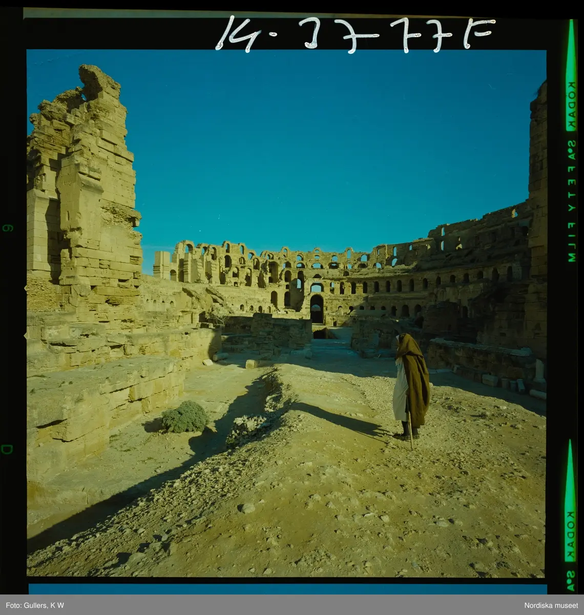 2791 Tunisien. Romerska amfiteatern i El Djem. En tunisisk man betraktar ruinerna.