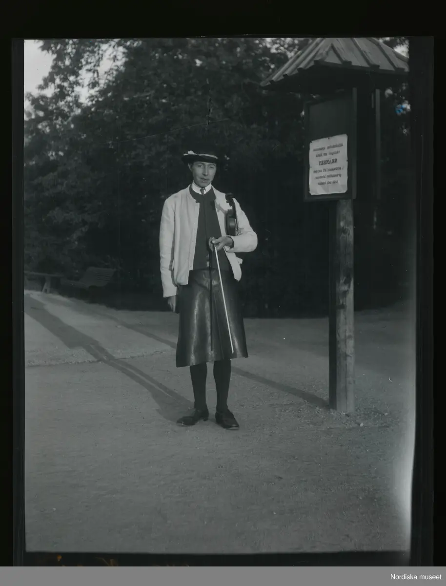 Porträtt av manlig folkmusiker. Skansen, Stockholm.