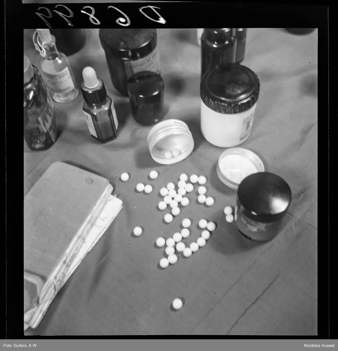 522 Kvacksalveri, Allers. Pillerburkar, flaskor och anteckningsbok.