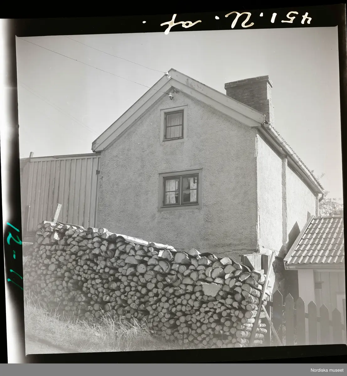 Vedstapel mot gatan. Björkholmen, Karlskrona.