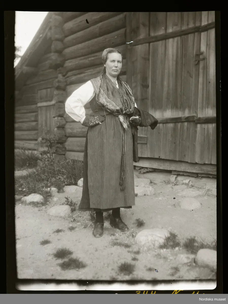 Titel: Porträtt av kvinna i folkdräkt. Skansen, Stockholm.