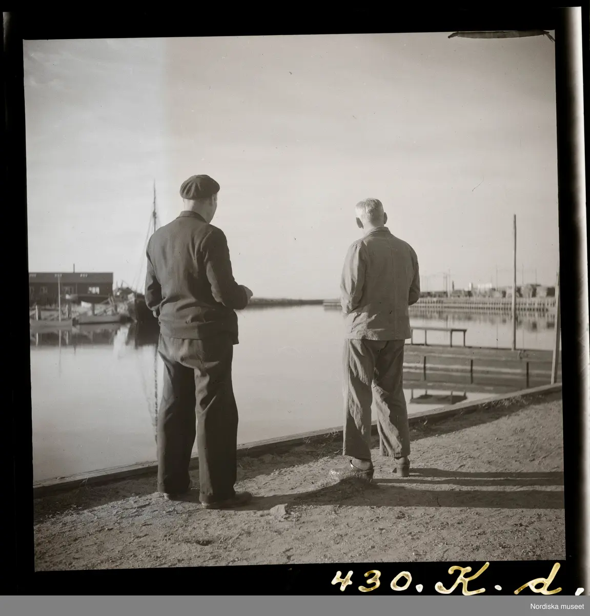 Text på montering i arkivet: Sjökapten Malmgren j:r och Oskar Jönsson spana efter bröderna Jonassons fiskebåt.