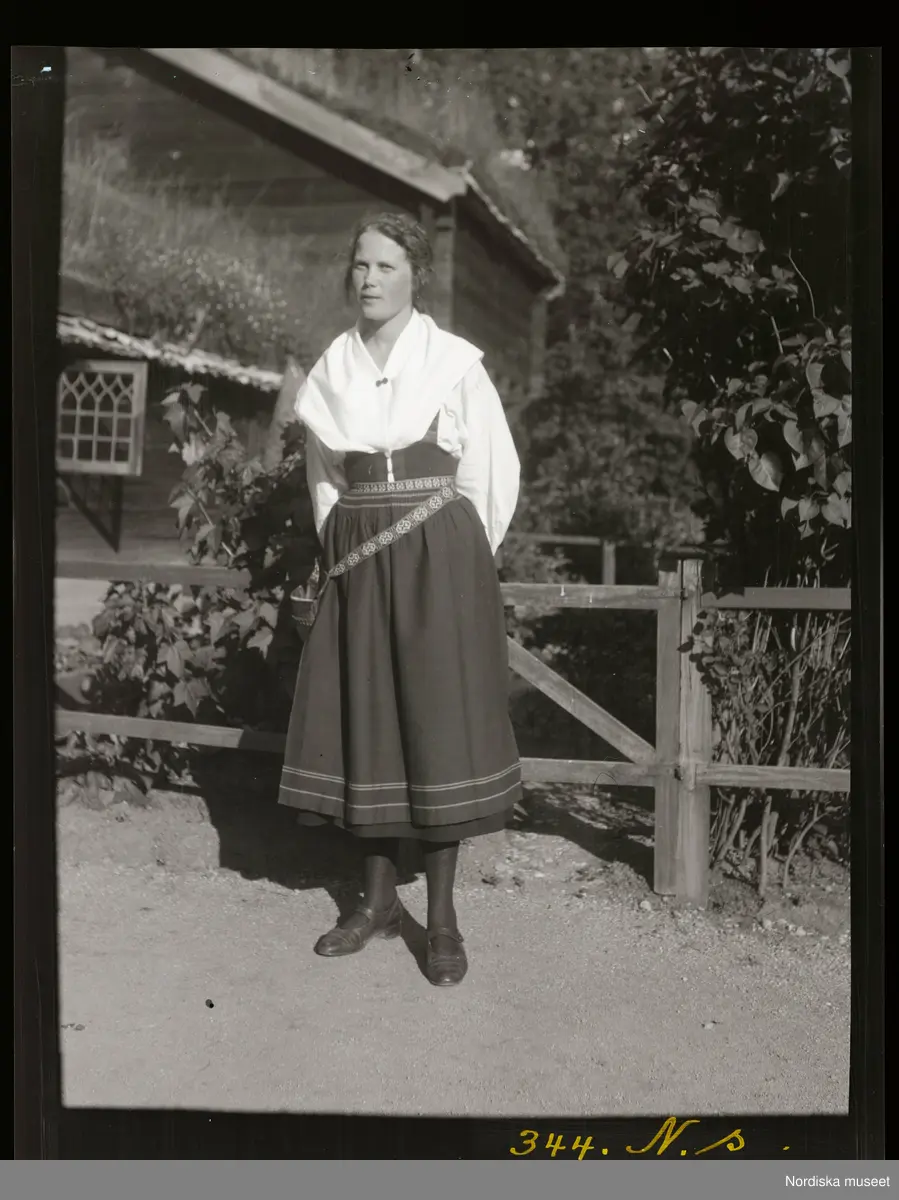 Titel: Porträtt av kvinna i folkdräkt. Skansen, Stockholm.