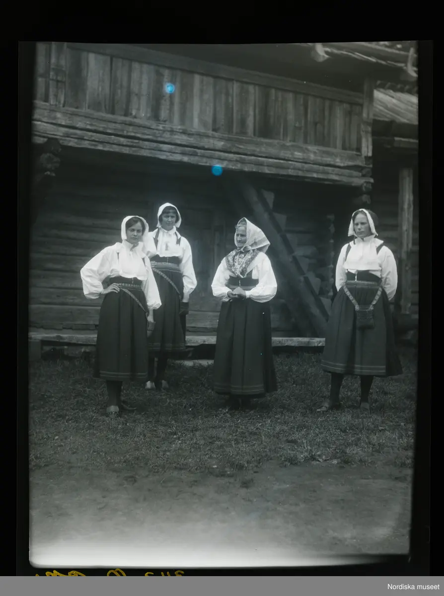 Fyra kvinnor i folkdräkt. Skansen, Stockholm.