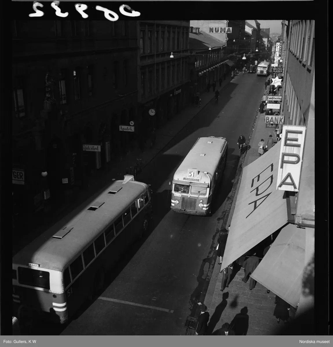539 Söder. Busstrafik på Götgatan norrut från korsningen Högbergsgatan.