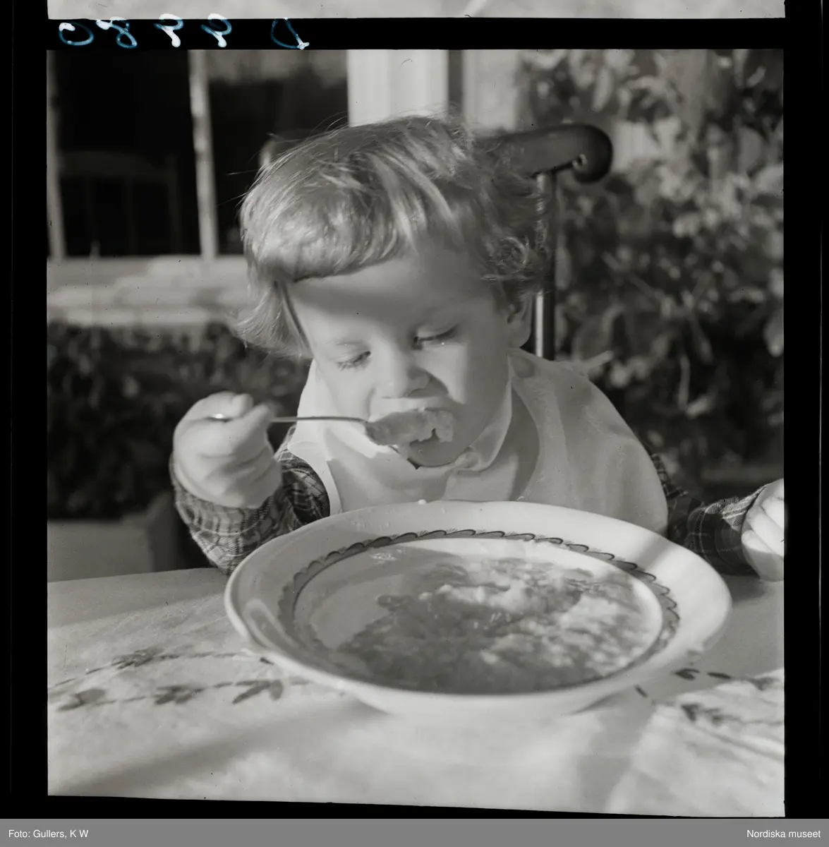 564 Vårgårda Havregryn. Ett barn äter gröt.