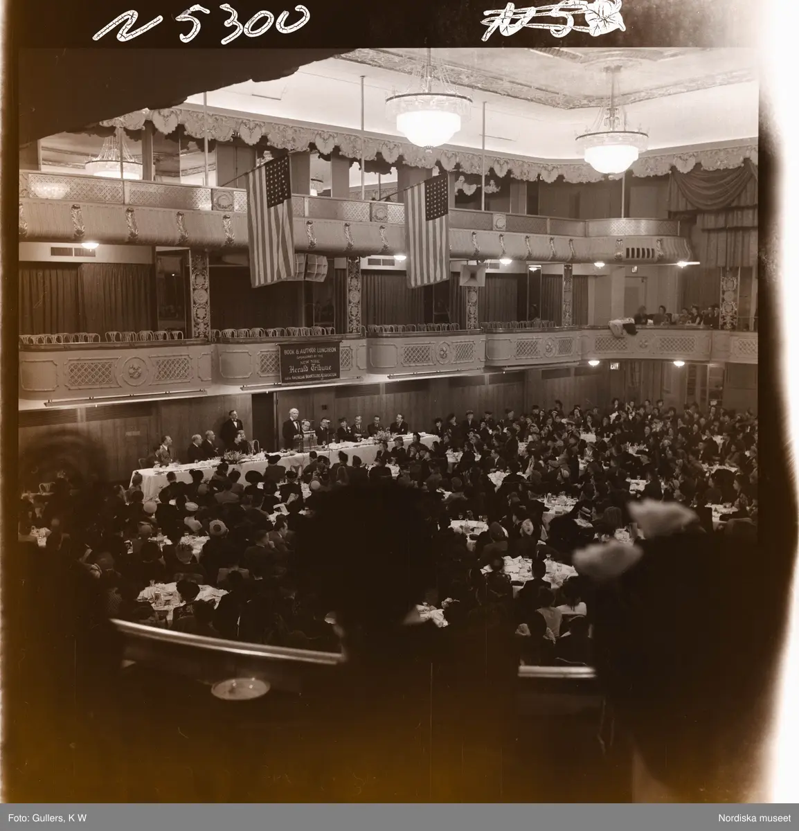 1690 New York allmänt (N.Y. Herald Tribune). Publik vid Herald Tribunes bok- och författar-lunch lyssnar på ett anförande.