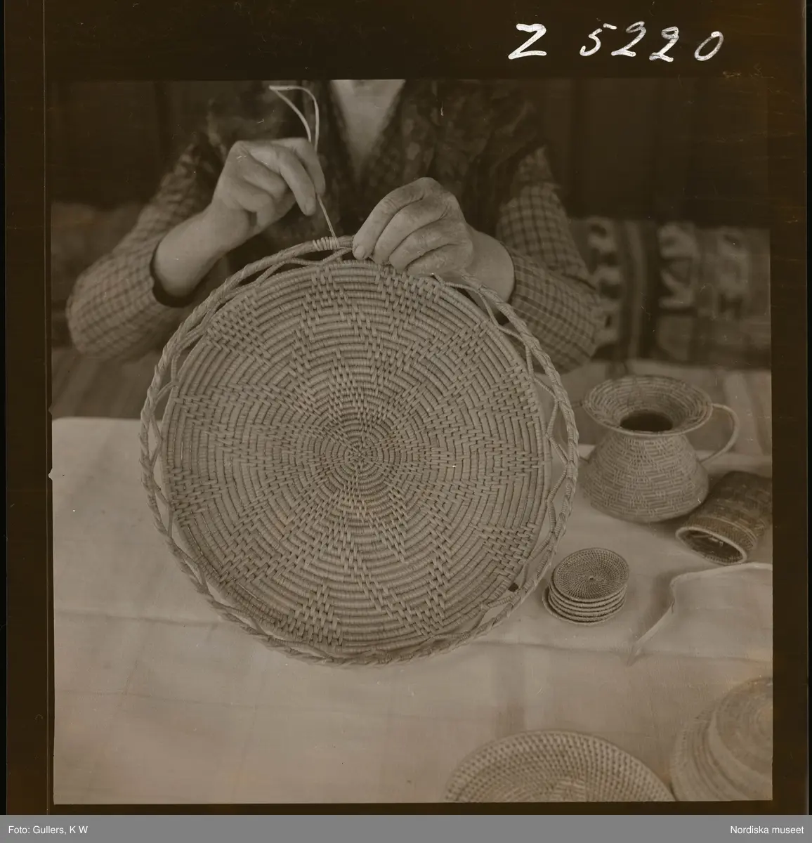 2384 Nilsson Fröken, Majvägen 7, Bromma Handarbete-korgflätning-tagn. Svensk Hemslöjd; vid Spinnrocken Jan. 57