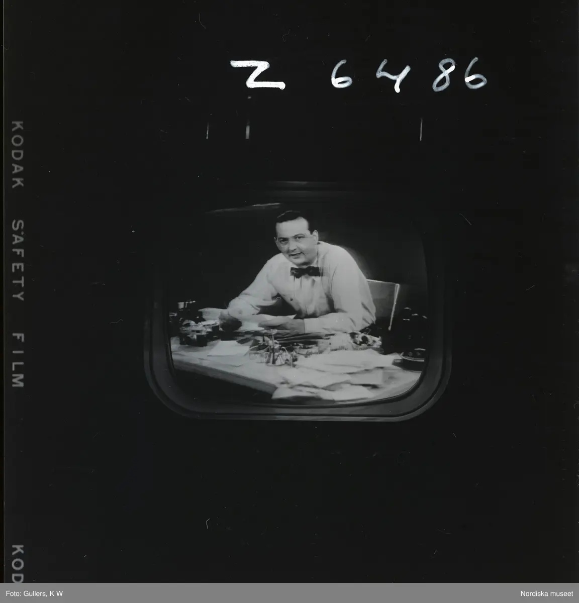 2454 Television Tak för TV; Sändning; Från utsändn. T-V-Studion + KWG på TV . Fotograf K W Gullers i TV-studio vid inspelning av fotografi-kurs. "Gullers fotokurs"