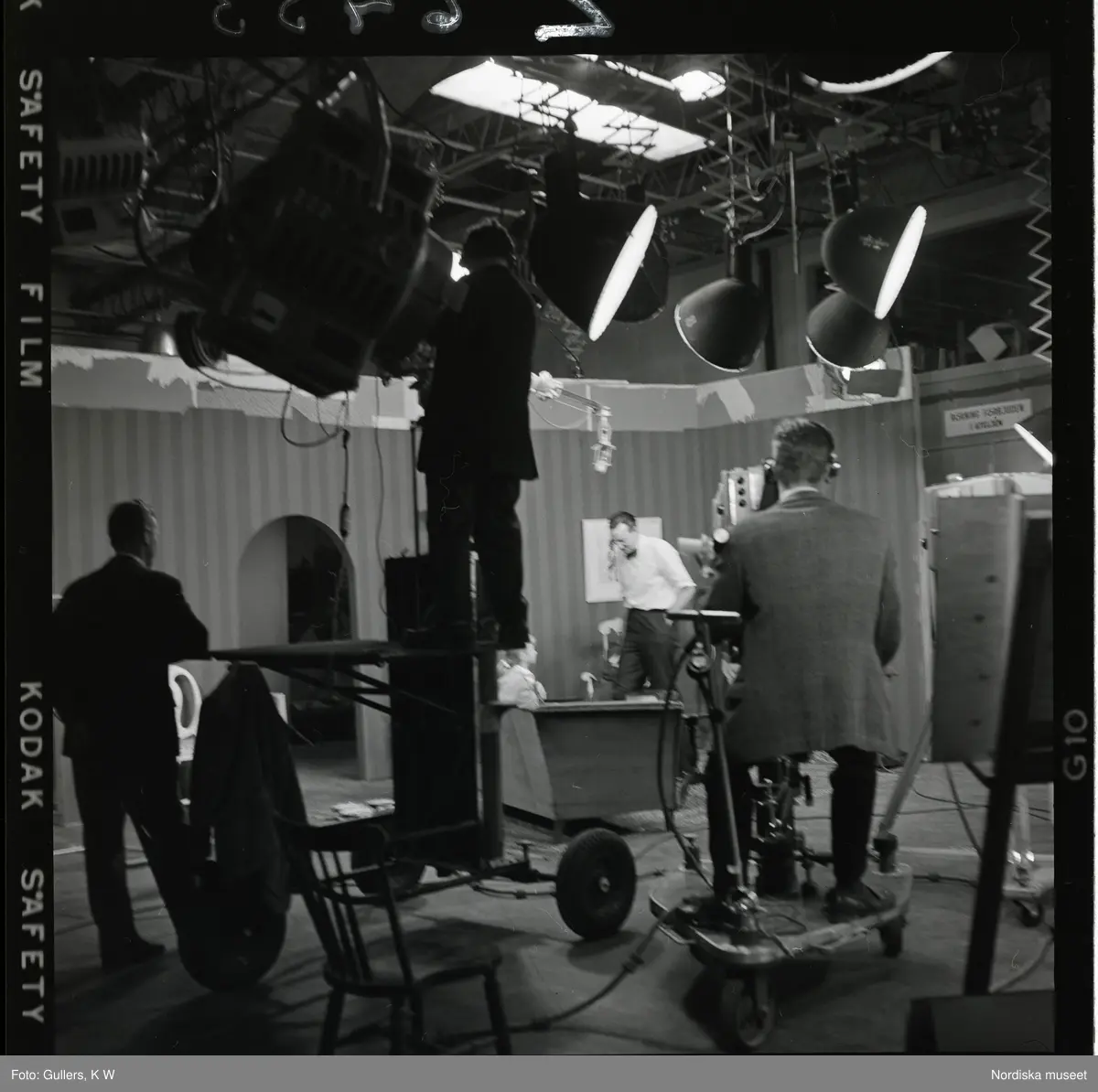 2388 Television Tak för TV; Sändning; Från utsändn. T-V-Studion + KWG på TV . Fotograf K W Gullers i TV-studio vid inspelning av fotografi-kurs. "Gullers fotokurs"