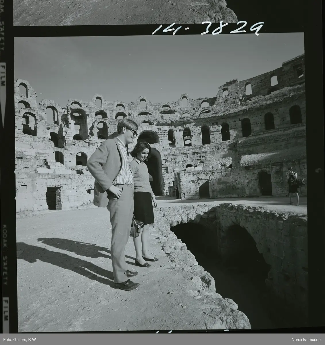 2791/1 Tunisien allmänt. Amfiteatern i El Djem. Ett par turister betraktar ruinerna.