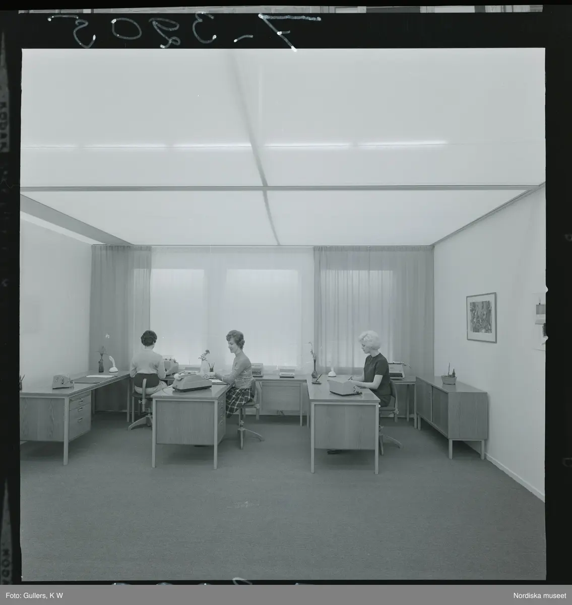 585/8 Facit Tokyo Daberg. Tre kvinnor arbetar vid skrivbord på ett kontor.
