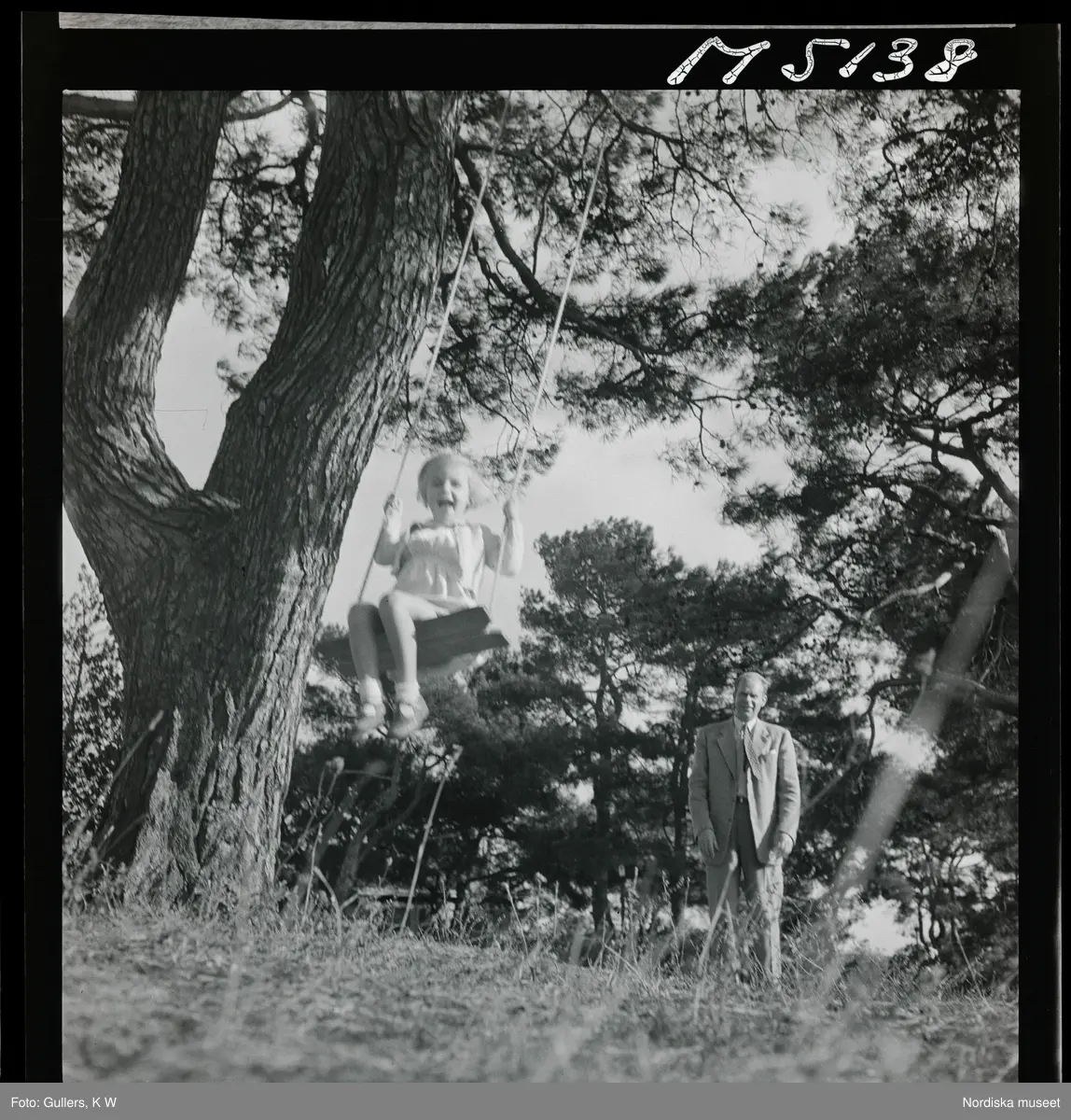 1717/K Istanbul allmänt. Ett barn gungar i en gunga upphängd i ett träd. En man står bakom och puttar på.