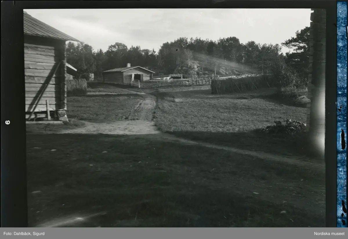 Anteckning påsiktskopia: Norrbotten, Överkalix sn. Övre Lansjärvs by. Vestervik no 2. Hörn av stora höboden, i fonden sommarladugård."