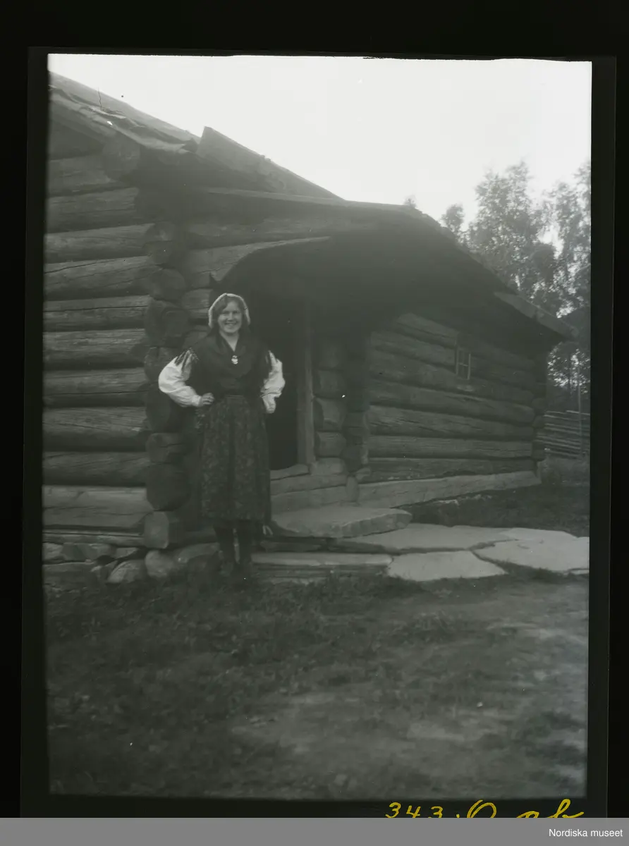 Titel: Porträtt av kvinna i folkdräkt. Skansen, Stockholm.