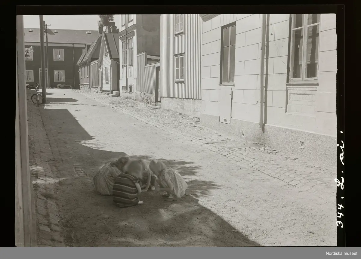 Några flickor leker på gatan. Björkholmen, Karlskrona.