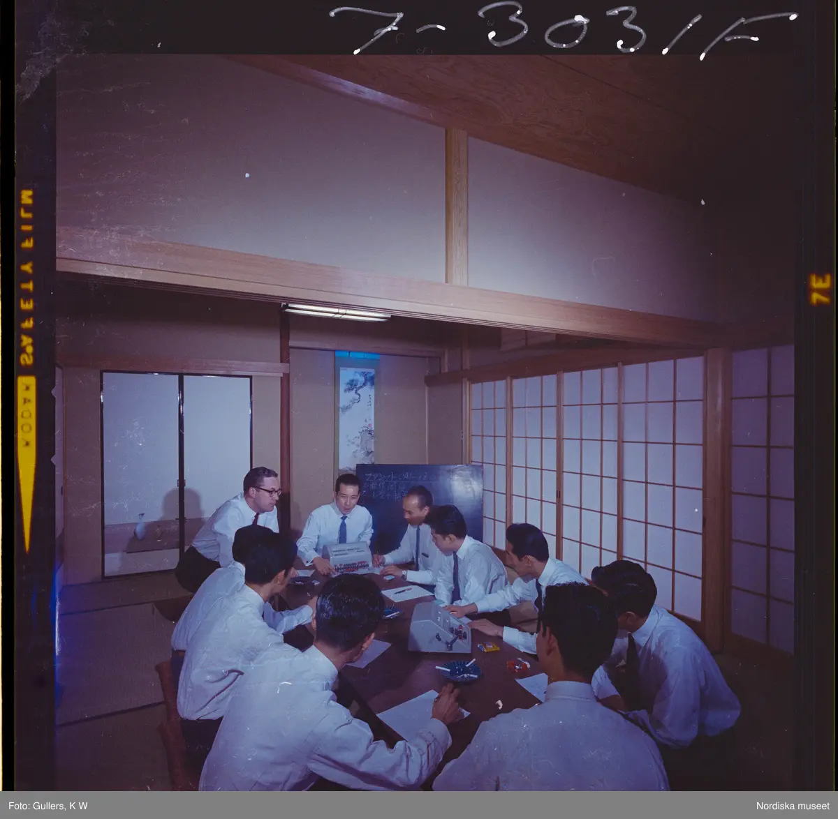 585/8 Facit Tokyo Daberg. En grupp män har möte i ett traditionellt japanskt rum.